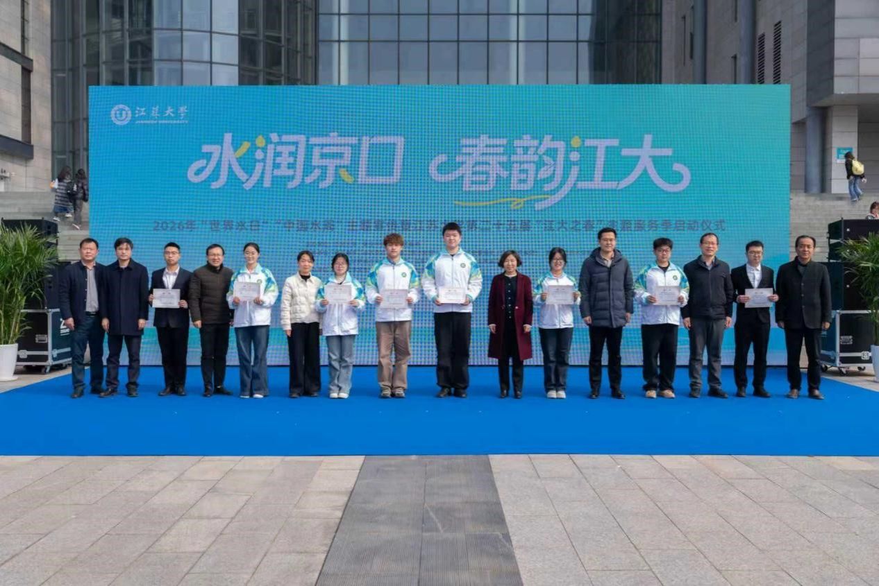 3月20日上午,“水润京口·春韵江大”2026年“世界水日”“中国水周”主题宣传暨江苏大学第二十五届“江大之春”主题服务季启动仪式在江苏大学图书馆南广场举行。本次活动由江苏大学与镇江市京口区联合举办,江苏大学党委副书记杨道建、镇江市水利局副局长汤兵、京口区副区长褚小明等校地领导出席活动。