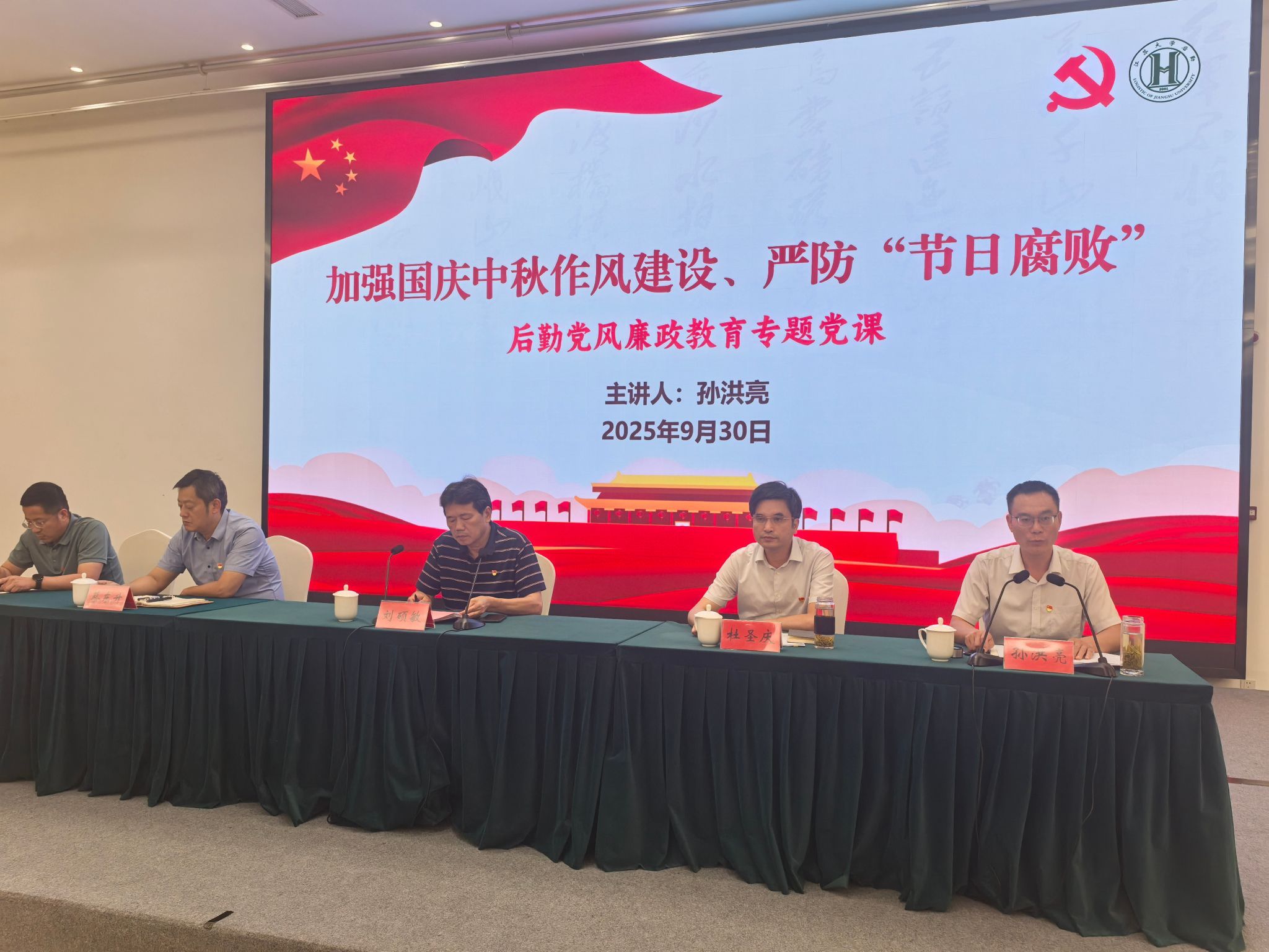 为持续巩固拓展落实中央八项规定精神成果,坚决防止“四风”问题反弹回潮,营造风清气正的节日氛围,9月30日下午,后勤党委在青教多功能厅组织召开党风廉政教育专题党课。后勤党委副书记、纪委书记孙洪亮以“加强国庆中秋期间作风建设、严防节日腐败”为主题主讲,后勤党委领导班子、全体科级干部、六岗及以上管理人员,以及采供管理科、能源管理科、校园管理科、人力资源管理科、财务与资产管理科等系统整治核心参与单位全体人员近140人参加。