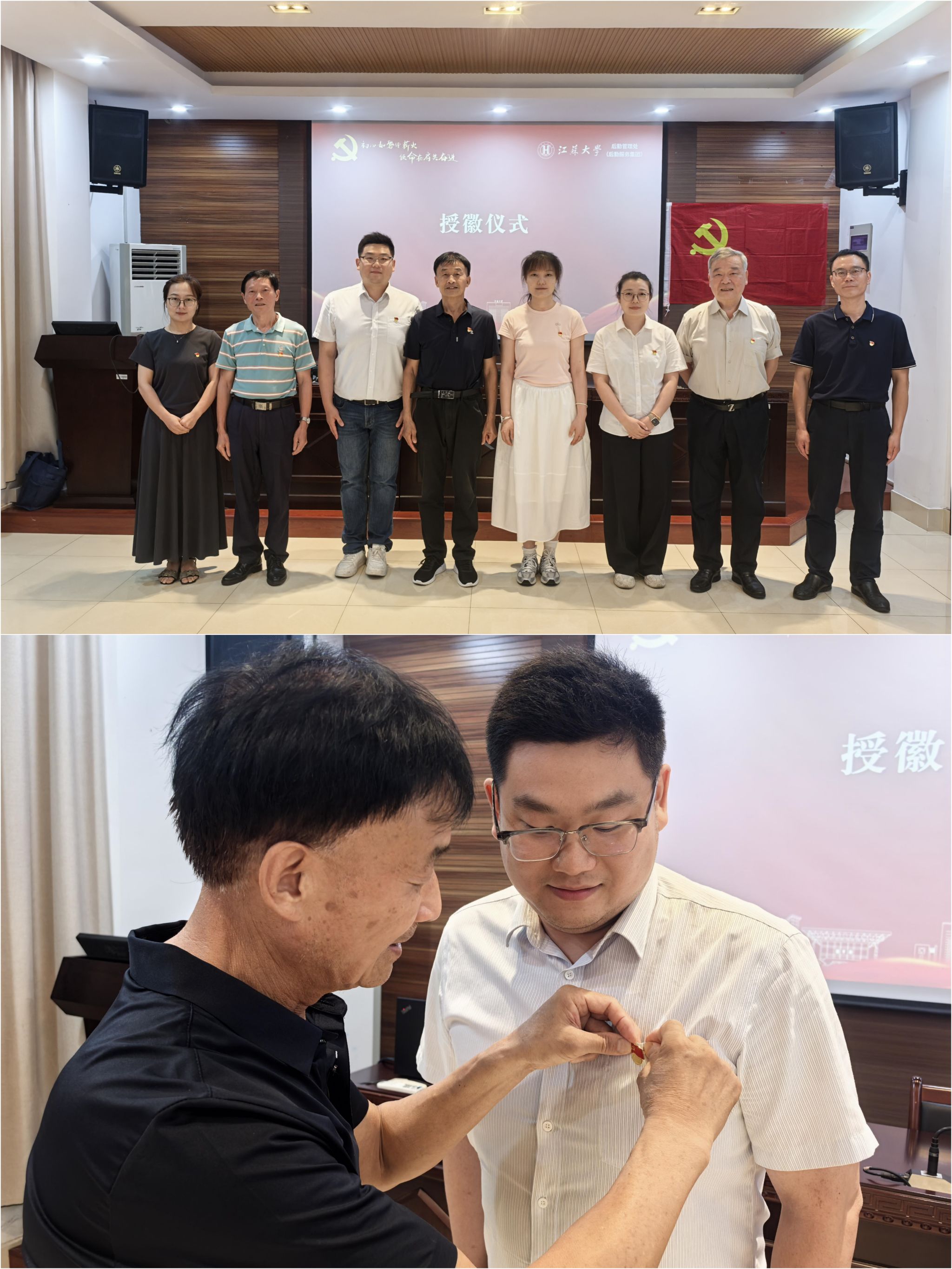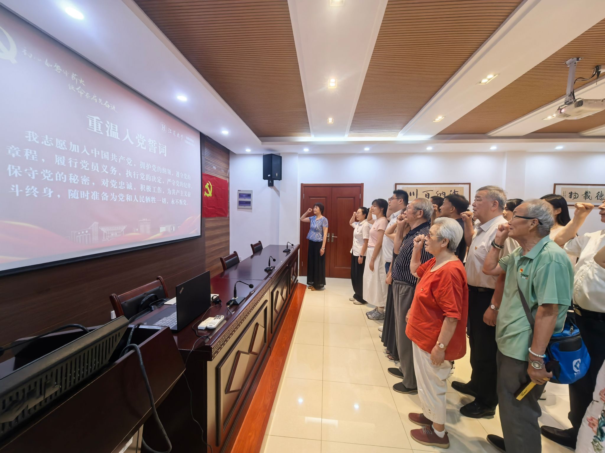 活动第二阶段进行了授徽仪式,由老党员代表为2025年新发展的4名党员佩戴党徽。全体党员在石春玲的领誓下,重温了入党誓词,铿锵有力的誓言回荡在会场,表达了对党的无限忠诚和为党的事业奋斗终身的坚定决心。随后,全体党员共同高唱《歌唱祖国》,激昂的旋律凝聚起澎湃的情感,将活动推向高潮。活动最后在全体人员的合影留念中圆满结束。